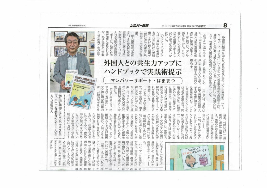 シルバー新報様には、以前発刊いたしました「外国人との共生ガイド本」の取材を頂き、全国の介護関係者の方々よりご注文を頂いた経緯がございます。