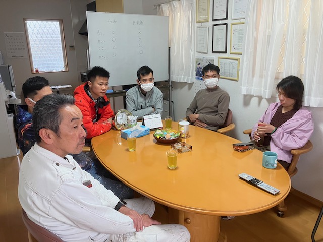 参加者は、社長の他にマンサポで支援中の特定技能者2名と他組合の技能実習生2名の合計5名でした。